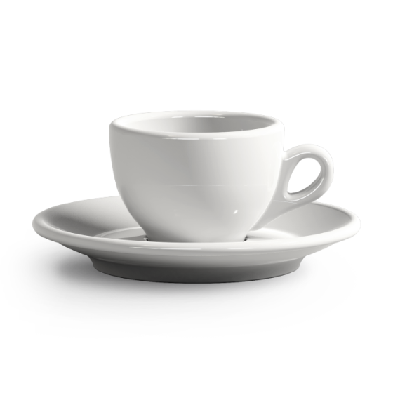 Porcelánová šálka s tanierikom z rady MARGHERITA (3 veľkosti: espresso, cappuccino, latte).