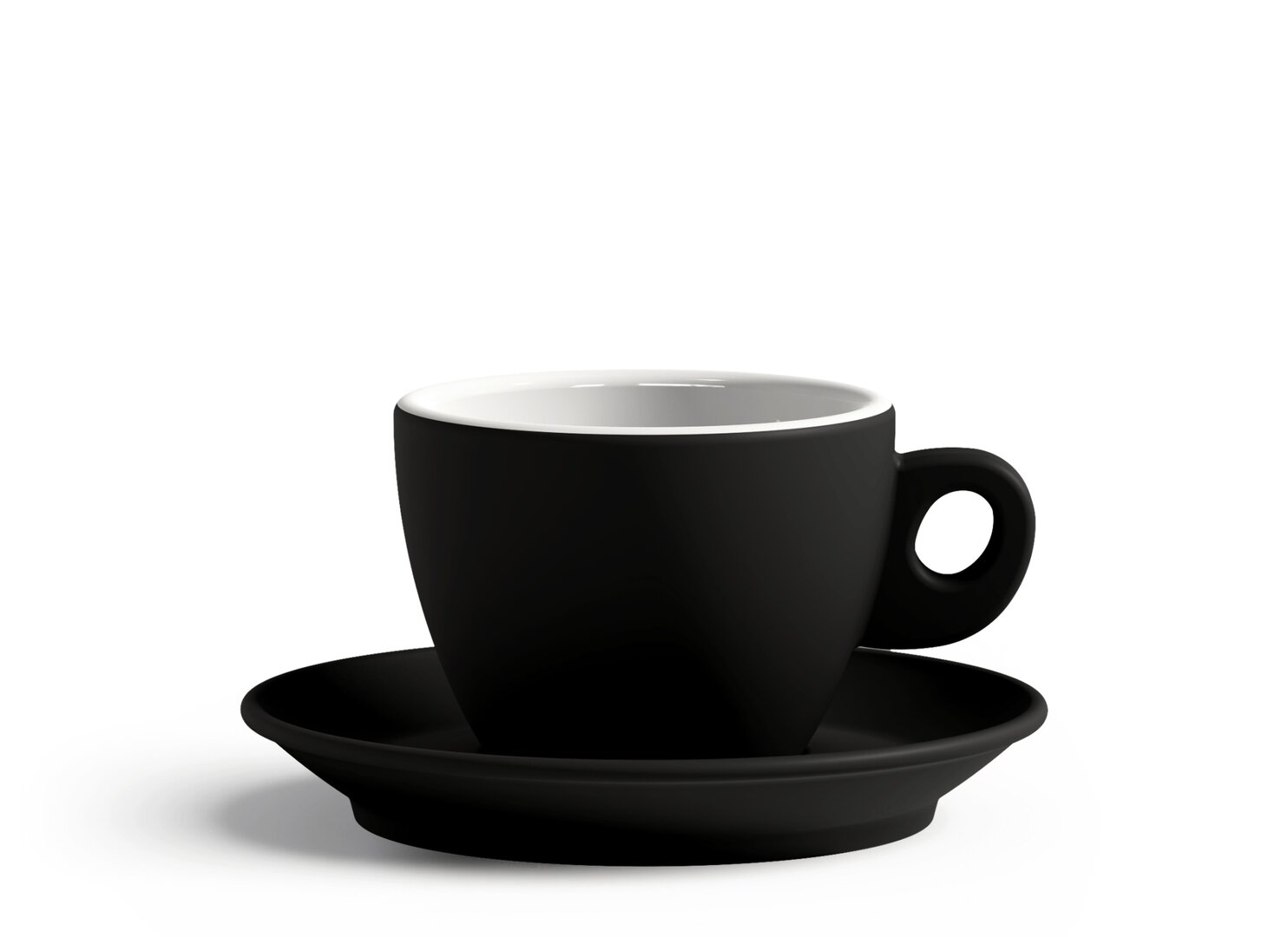 Porcelánová hrubostenná čierna šálka s tanierikom cappuccino z rady GIACINTO (10 modelov) v špeciálnom matnom prevedení. Moderná rada talianskych šálok GIACINTO snúbí tradičný dizajn so špecifickým vnútorným oválnym zaoblením, dôležitým pre správne napenenie cappuccina. Hrubostenný porcelán uchová ideálnu teplotu a arómu podávanej kávy.