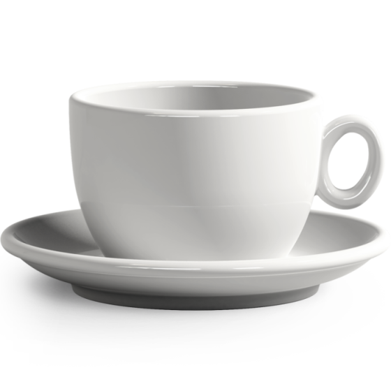 Porcelánový veľký hrnček s tanierikom na kávu latte. (6 modelov LAVANDA/ IBISCO: espresso, cappuccino, latte, veľký hrnček) svojou líniou imitujú tvar kávového zrna.