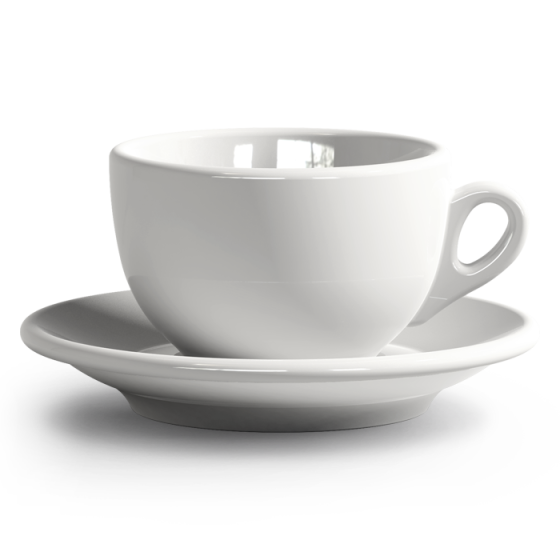 Porcelánová šálka s tanierikom z rady MARGHERITA (3 veľkosti: espresso, cappuccino, latte).
