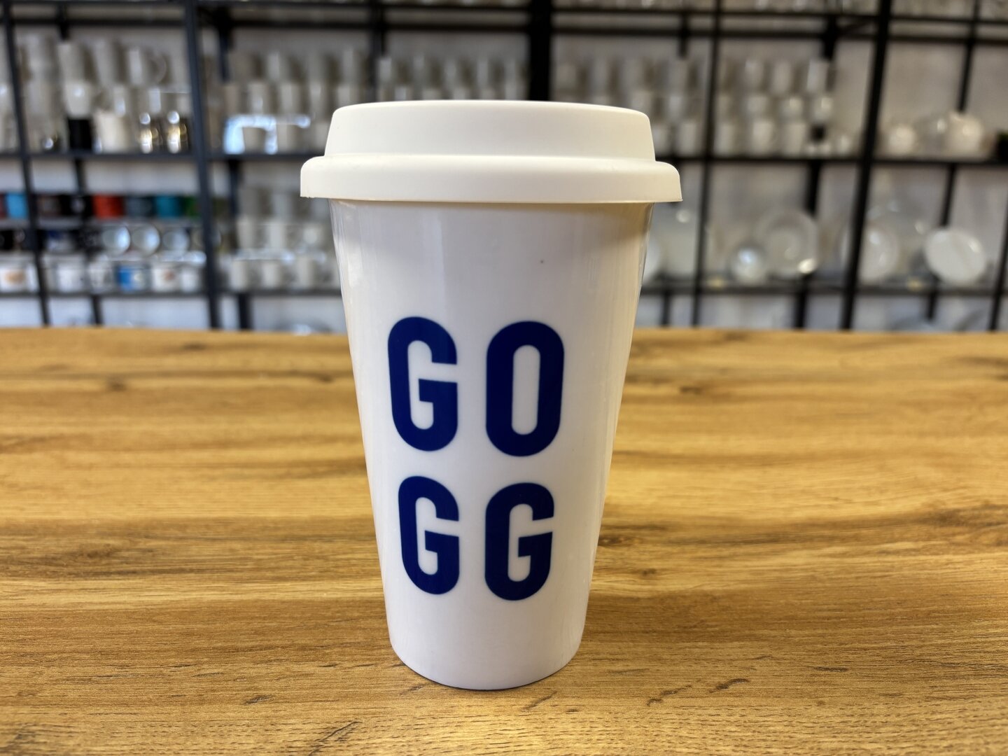 Porcelánové hrnky Take Away s glazurou a vypískovaným logem